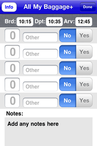 All My Baggage is a checklist that will help you keep track of the number of baggage items that you bring to the airport or train station. During the rush to catch your flight or train, it can be chaotic with so many things to do: park your car or take public transportation, check-in some luggage, check flight status, go through security, and find your gate or terminal. This app will help you to remember all your belongings and prevent leaving anything behind!