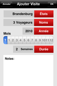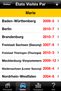 Avez-vous voyagé à toute les etats en Allemagne récemment? Souhaitez-vous un moyen facile de garder une trace de vos visites au cours des années passées et futures? Cette application permet de suivre des régions que vous et les membres de la famille et des amis ont visité, et permet également d'entrée de détails facultatifs qui devraient vous être utiles dans l'avenir. Inclut les dispositifs suivants: