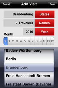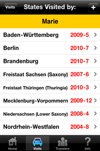 Have you traveled to any states in Germany recently? Would you like an easy way to keep track of your visits over the past and future years? This app keeps track of the regions that you and other family members and friends have visited, and also allows input of optional details that should be useful to you in the future. Includes the following features: