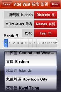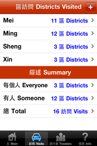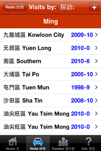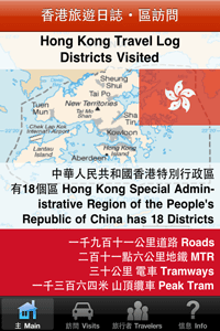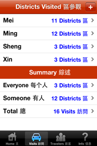 Have you traveled to any districts recently in Hong Kong? Would you like an easy way to keep track of your visits over the past and future years? This app keeps track of the districts that you and other family members and friends have visited. It also allows you to input optional details that should be useful to you in the future. Includes the following features: