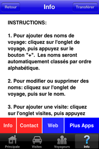 - Permet de modifier les détails de toute visite écoulée. Tout le monde qui ont voyagé sur cette visite est automatiquement mis à jour aussi, de gagner du temps.