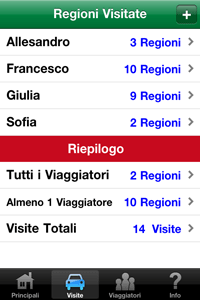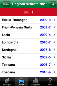 Avete viaggiato in regioni in Italia di recente? Vuoi un modo semplice per tenere traccia delle vostre visite nel corso degli anni passati e futuri? Questa applicazione tiene traccia delle regioni che voi e gli altri familiari e amici hanno visitato, e permette anche di input dei dati opzionali che dovrebbero essere utili in futuro. Include le seguenti caratteristiche:
