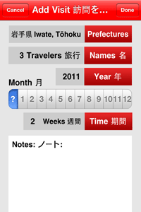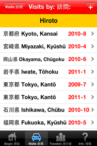 Have you traveled to any prefectures in Japan recently? Would you like an easy way to keep track of your visits over the past and future years? This app remembers of the areas that you, other family members, and friends have visited. You can input details about your travels. Includes the following features:
