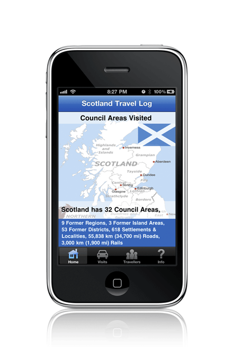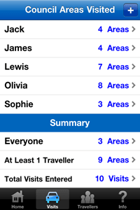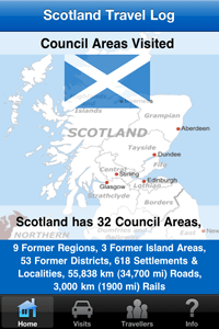 Have you traveled in Scotland to any of the 32 council areas recently? Would you like an easy way to keep track of your travels over the past and future years? This app keeps track of the council areas that you and other family members and friends have visited, and also allows input of optional details that should be useful to you in the future. Includes the following features: