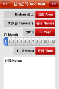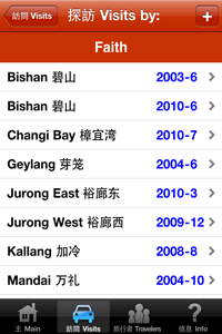 Have you traveled to any of the various areas in Singapore recently? Would you like an easy way to keep track of your visits over the past and future years? This app keeps track of the areas that you and other family members and friends have visited, and also allows input of optional details that should be useful to you in the future. Includes the following features: