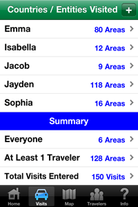 Have you traveled to any countries around the world recently? Would you like an easy way to keep track of your country visits over the past and future years? This app keeps track of the countries that you and other family members and friends have visited, and also allows input of optional details that should be useful to you in the future. Includes the following features:
